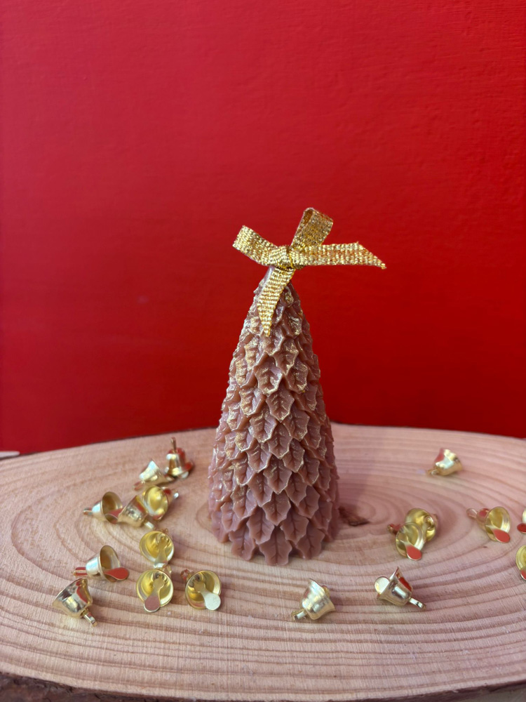 Candela in cera di oliva, colore nocciola, essenza Pan di Zenzero, dettagli con brillanti oro e dipinti in oro a mano.