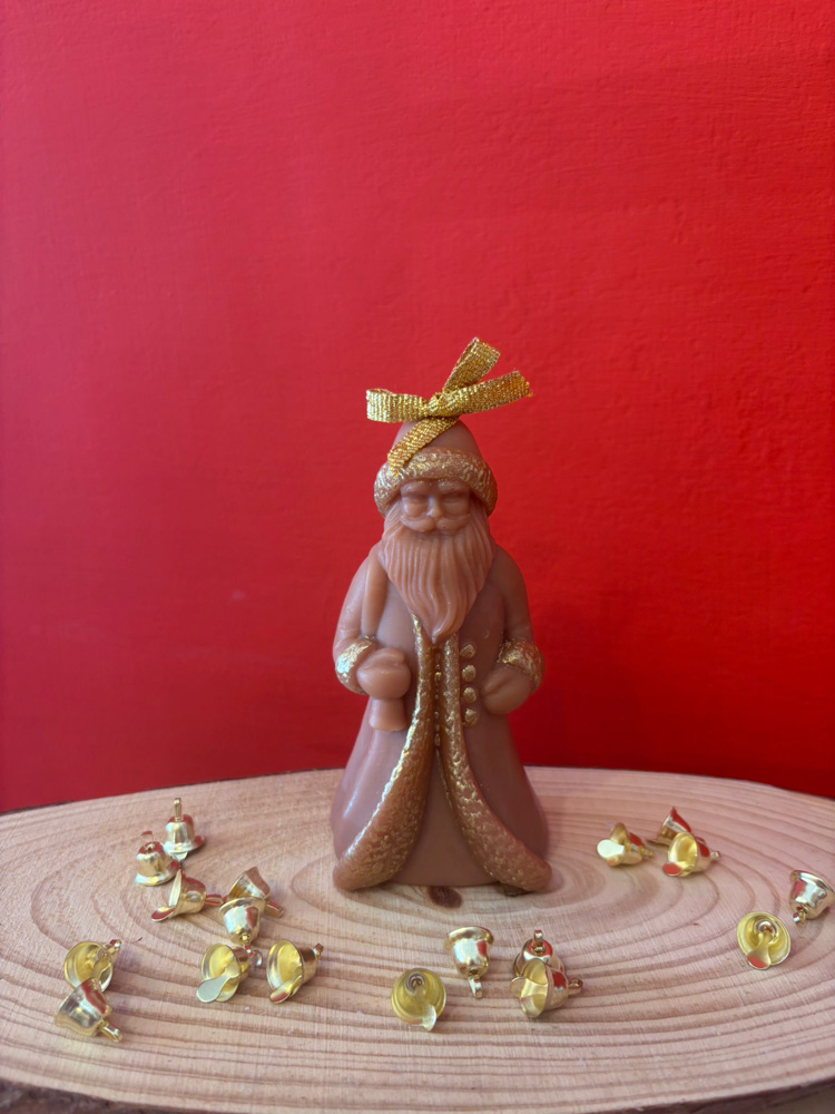 Candela in cera di oliva, colore nocciola, essenza Pan di Zenzero, dettagli con brillanti oro e dipinti in oro a mano.