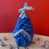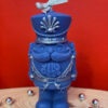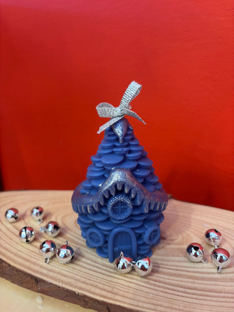 Candela in cera di oliva – Colore blu – Essenza zucca vanigliata – Dettagli con brillantini argento o dipinti in argento a mano.