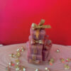 Candela in cera di oliva, colore nocciola, essenza Pan di Zenzero, dettagli con brillanti oro e dipinti in oro a mano.