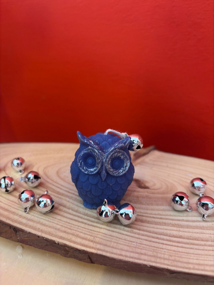 Candela in cera di oliva – Colore blu – Essenza zucca vanigliata – Dettagli con brillantini argento o dipinti in argento a mano.