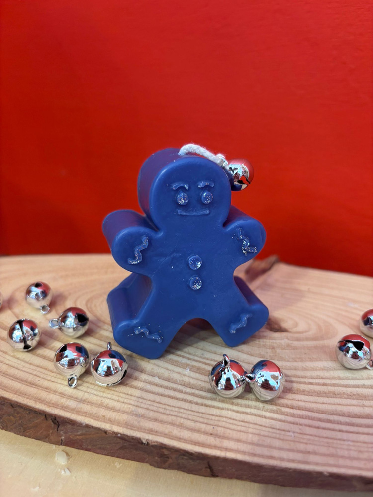 Candela in cera di oliva – Colore blu – Essenza zucca vanigliata – Dettagli con brillantini argento o dipinti in argento a mano.