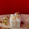 Candela in cera di oliva – Colore bianca – Essenza zucca vanigliata – Dettagli con brillantini argento o dipinti in argento a mano.