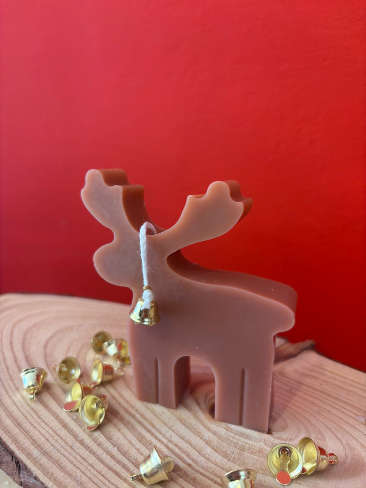 Candela in cera di oliva, colore nocciola, essenza Pan di Zenzero, dettagli con brillanti oro e dipinti in oro a mano.