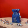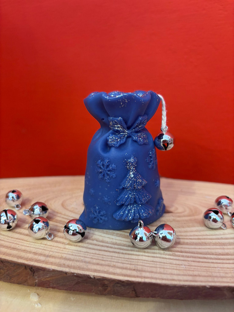 Candela in cera di oliva – Colore blu – Essenza zucca vanigliata – Dettagli con brillantini argento o dipinti in argento a mano.