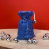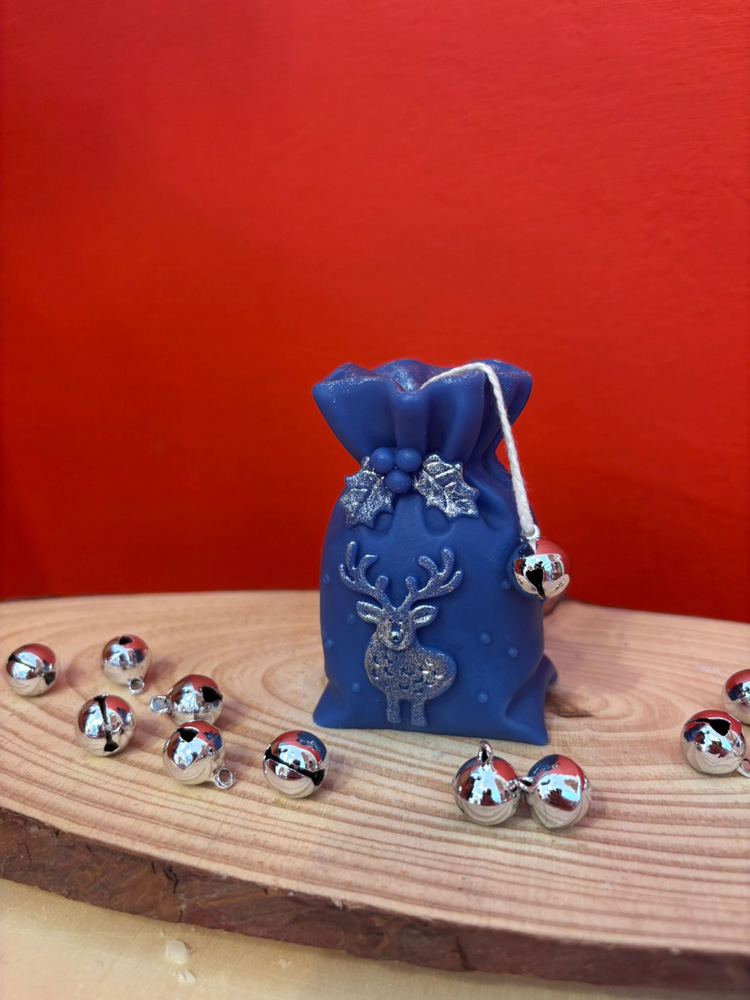 Candela in cera di oliva – Colore blu – Essenza zucca vanigliata – Dettagli con brillantini argento o dipinti in argento a mano.