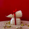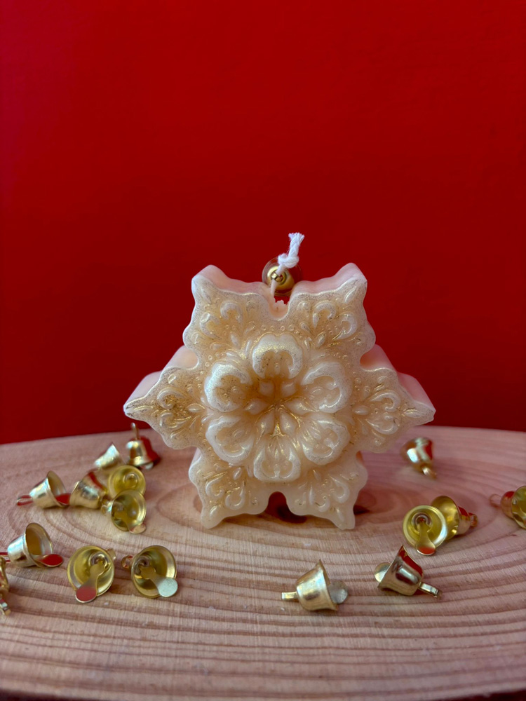 Candela in cera di oliva – Colore bianca – Essenza zucca vanigliata – Dettagli con brillantini argento o dipinti in argento a mano.